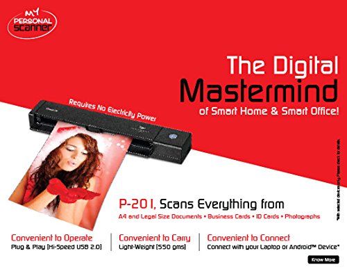 The P-201 is a portable scanner for scanning on the go of important documents just a plug away. It works with USB Power and extremely light weight delivering true balance between portability and functionality. The preinstalled scanning utility provides plug-and-scan capabilities. When the feed-tray-power-link is enabled, simply opening the feed tray turns the scanner on and makes it ready to scan. The P-201 draws power from a single USB port, eliminating the need for a dedicated power cable and reducing clutter around the scanner.The P-201 provides the function of a desktop scanner, despite its compact size. The scanning speed is 7.5secs. per page. Weighing only 550g and measuring only 312.5 x 55.5 x 40mm in size, the scanner's ultra compact body allows convenient portability to your home, office and just about anywhere in one hand.